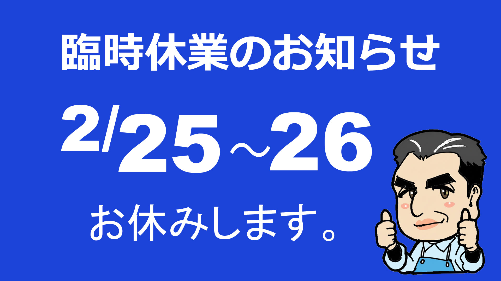 2/25・26臨時休業のお知らせ